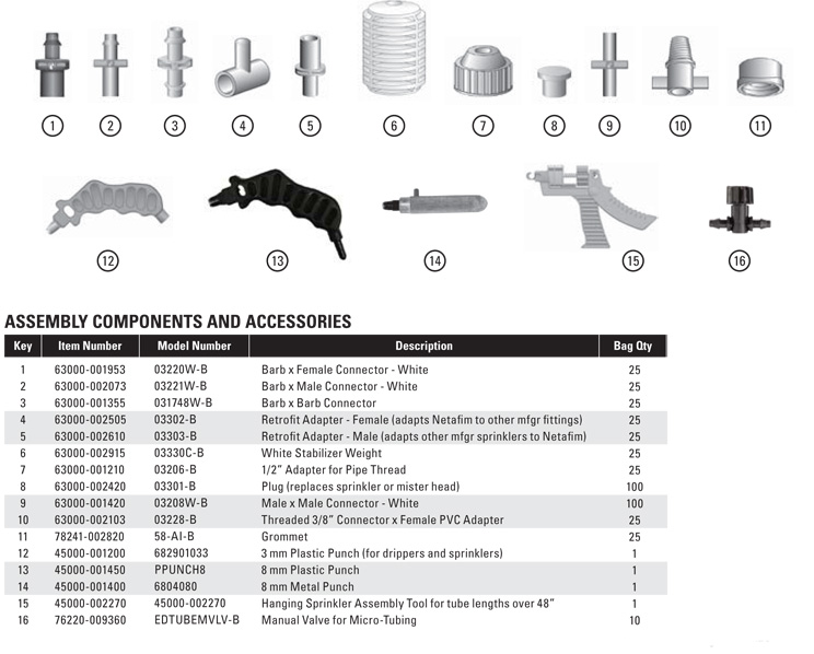 * Adapts other manufacturer's sprinklers to Netafim. Micronet to Dan Adapter (male to male).